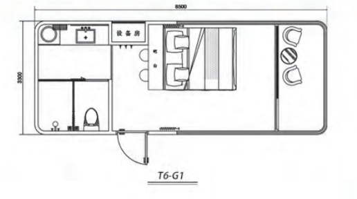 Each pod is equipped with a smart home control system, integrated HVAC, and high-end interior finishes including wood-grain composite flooring and designer bathroom fixtures. The T6-G1 floor plan optimizes the 8.5-meter length to include a dedicated bedroom, equipment room, and a panoramic lounge area.