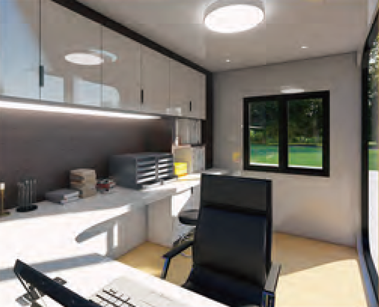Interior layouts can be customized with furniture, HVAC systems, and smart lighting to match different commercial or residential applications.