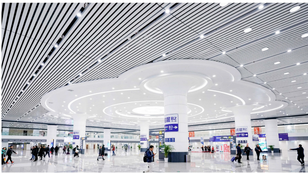At only 6.55kg/m², these panels significantly reduce the dead load on the building's suspension system while maintaining high bending stiffness of 9980MPa.