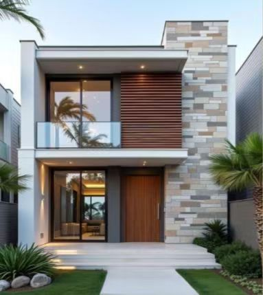 This two-story villa utilizes a cold-rolled light steel framing system to deliver a spacious 4-bedroom layout with a contemporary European facade. The design integrates premium stone cladding, timber accents, and expansive glazing to provide a luxury living experience with a significantly reduced carbon footprint compared to traditional concrete construction.