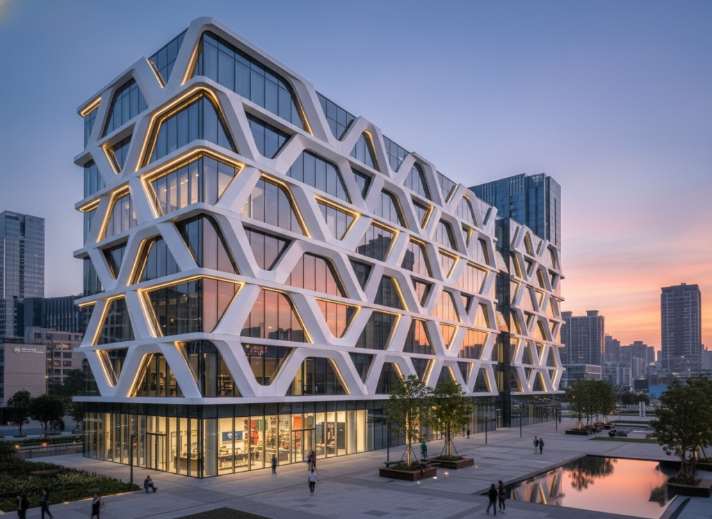 Precision-engineered architectural panels designed for complex geometric facades and bespoke structural aesthetics.