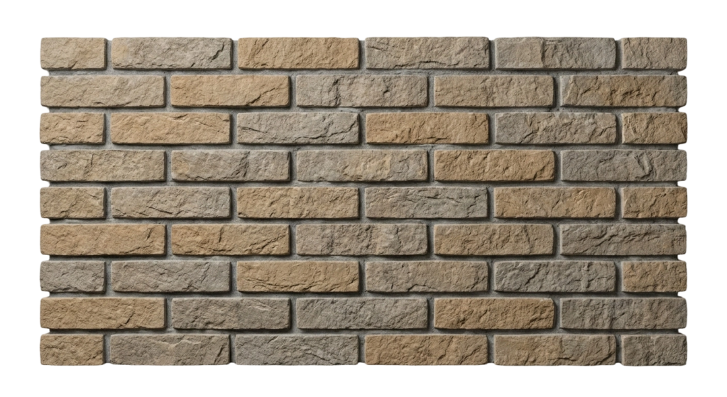 Individual stone bricks or small modules are installed in a structured layout, offering flexibility for façade patterns and design variations.
