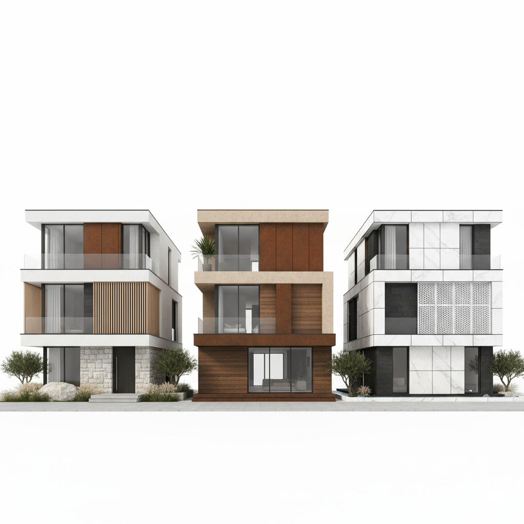 Elegant façades, refined architectural proportions, and customizable prefabricated systems designed for premium residential and villa developments.