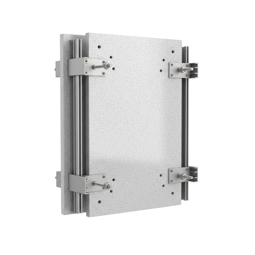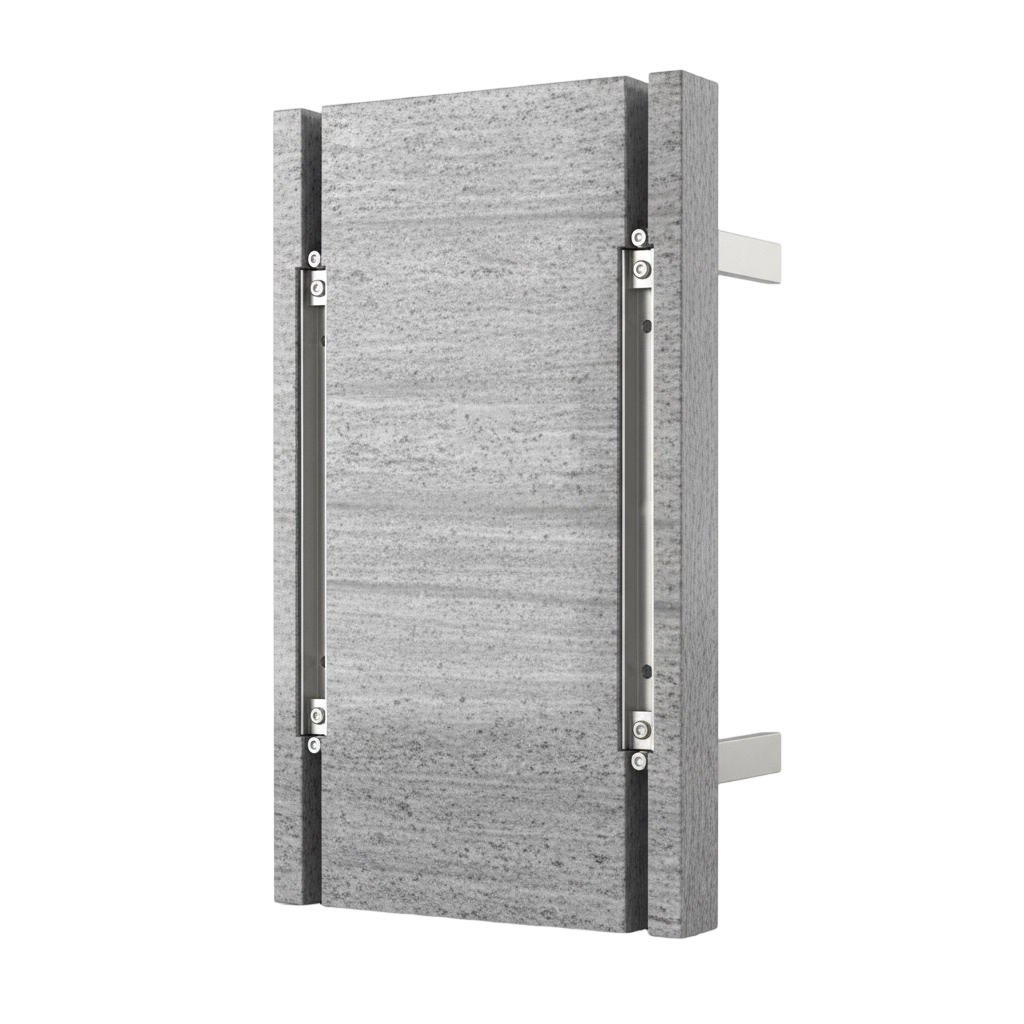 Granite panels are fixed using rear anchors, leaving the exterior surface clean and uninterrupted. This system offers high safety performance and is commonly used in high-rise and premium façade projects.