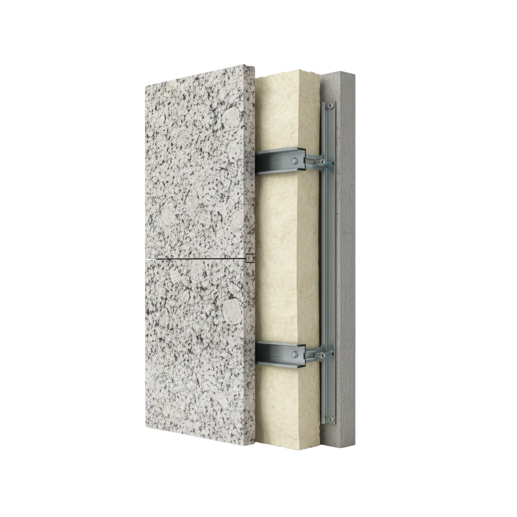 Combines stone panels with thermal insulation layers to improve building energy efficiency while preserving the natural stone façade appearance.