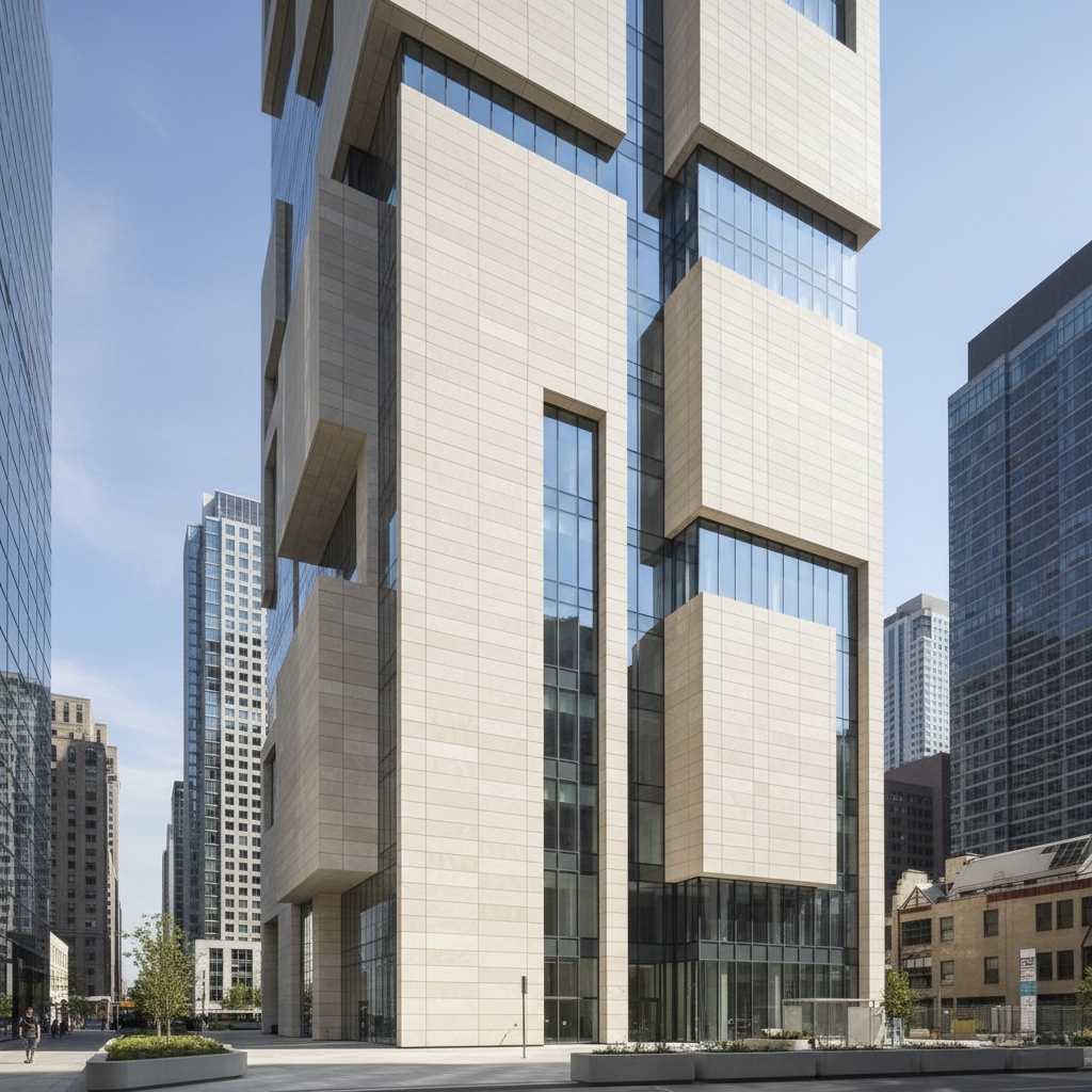 A limestone curtain wall is a façade system that uses natural limestone panels fixed to a building structure through mechanical anchoring systems.