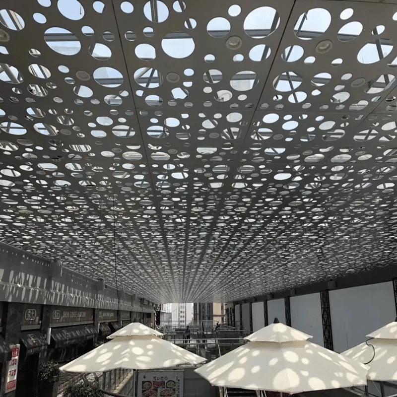 Different perforation patterns, finishes, and panel sizes allow customization for various architectural styles.