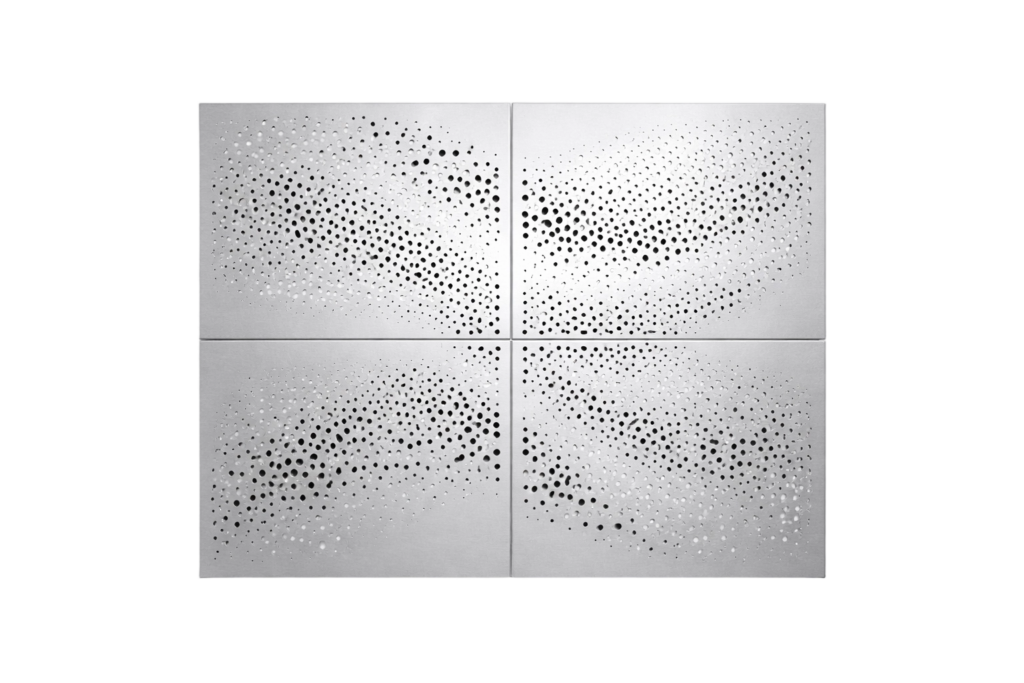 Panels with customized hole sizes, spacing, and patterns to meet architectural design requirements and branding concepts.