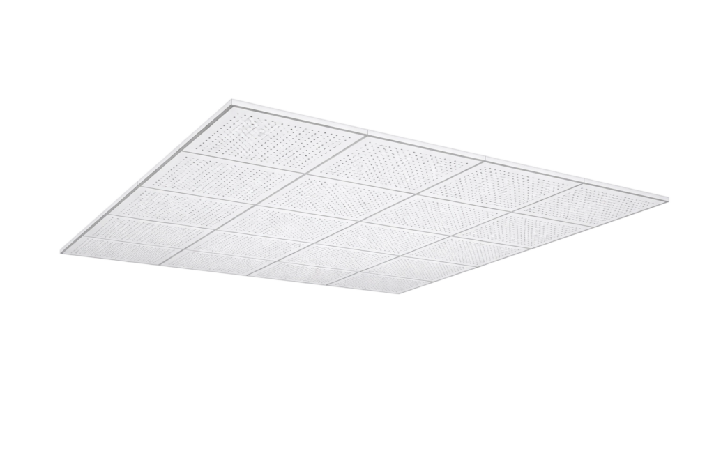 Uniform perforation patterns with modular panel sizes, suitable for most commercial and office ceiling applications.