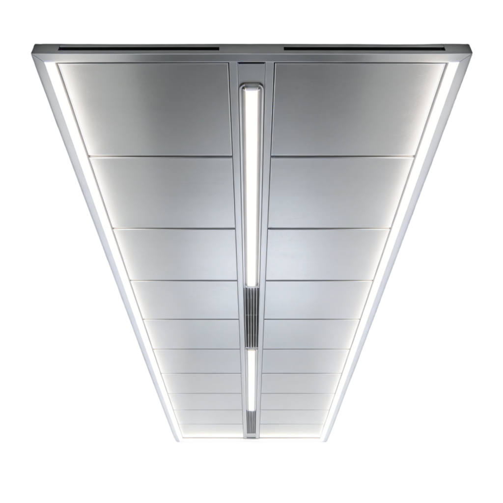 Incorporates lighting elements into the ceiling structure, allowing seamless integration of illumination and architectural form.