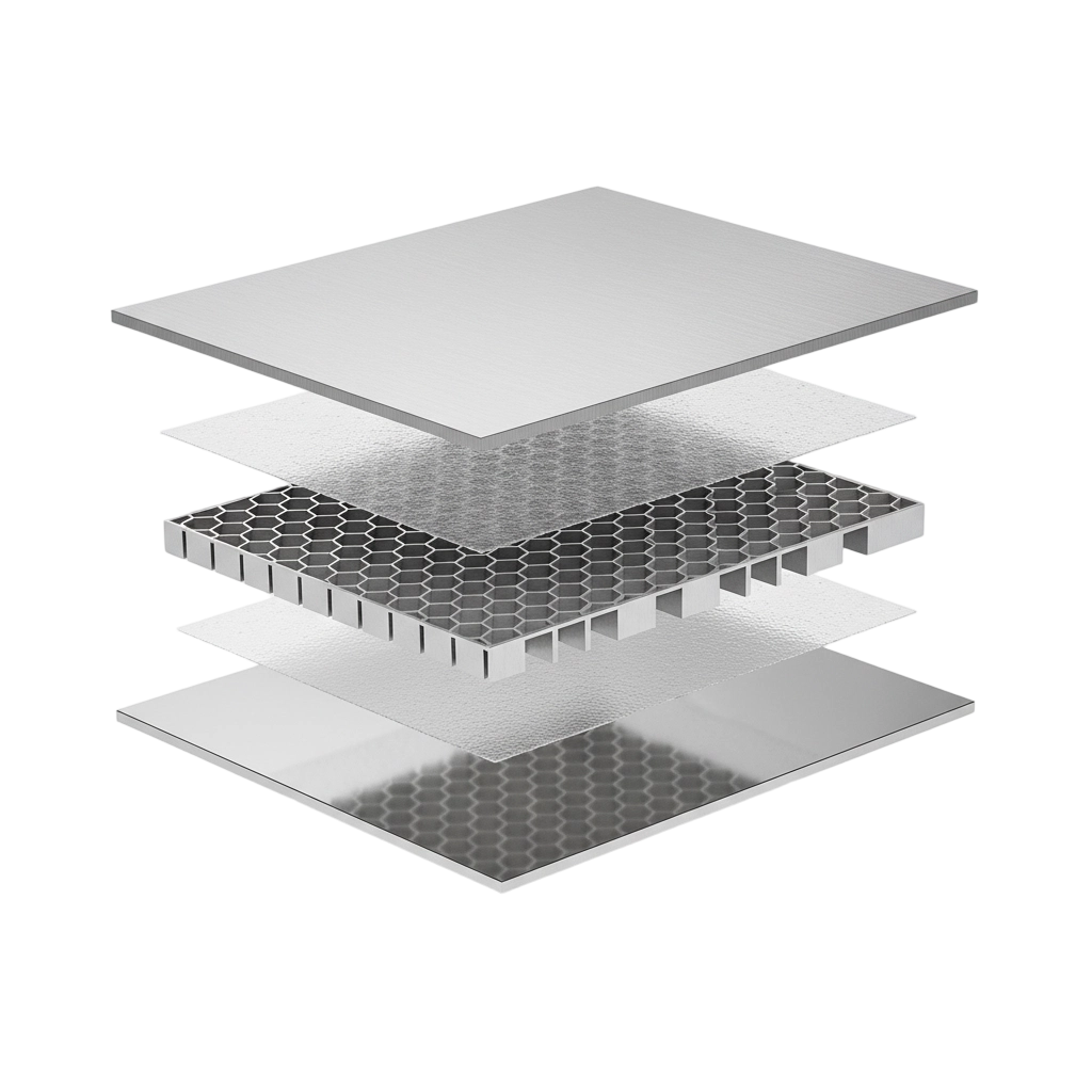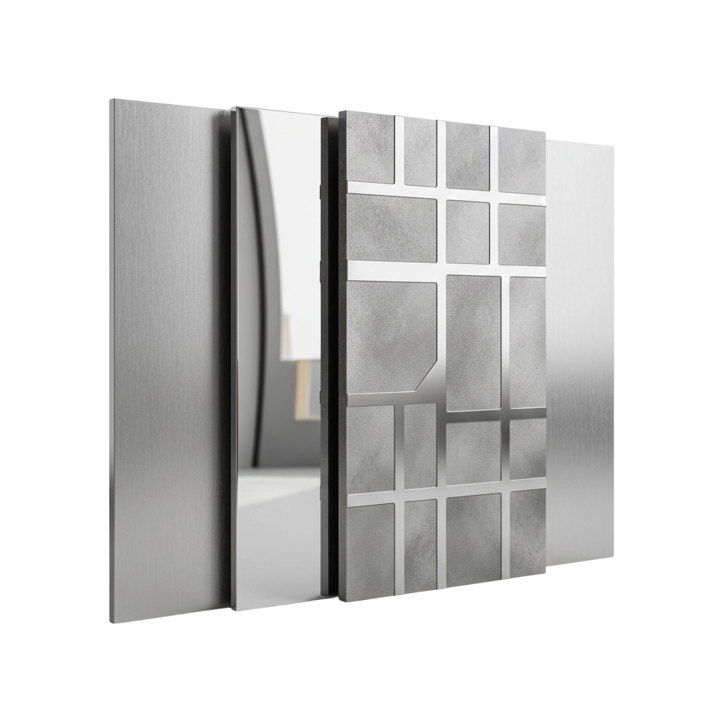 Composite panels combine stainless steel surfaces with lightweight core materials, reducing overall weight while maintaining rigidity and flatness. Ideal for large façade areas.
